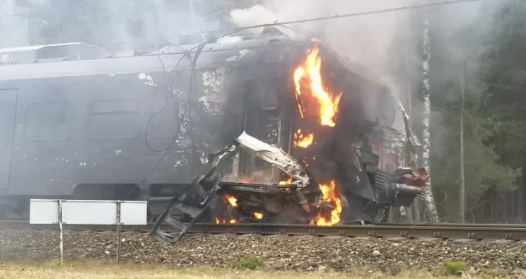 Pożar pociągu po wypadku w Widełce