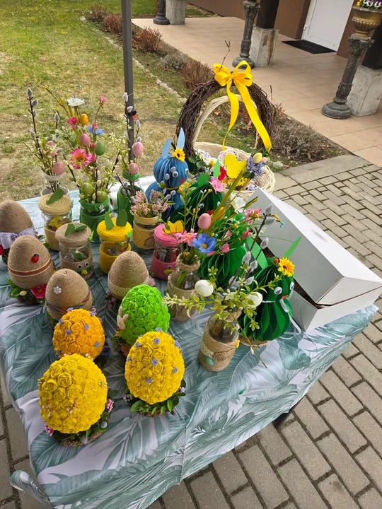 Już od rana przy Domu Seniora odbywał się kiermasz ozdób wielkanocnych, który cieszył się dużym zainteresowaniem. Można było nie tylko kupić ręcznie wykonane dekoracje, ale także podziwiać prezentację najciekawszych palm tradycyjnych.