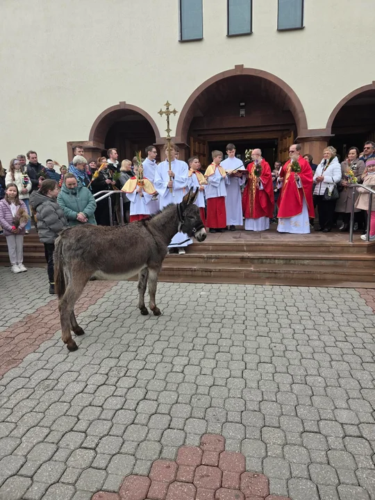 Uroczystości rozpoczęły się od poświęcenia palm, po którym wierni wzięli udział w procesji wokół kościoła. Jej najbardziej charakterystycznym elementem – i jednocześnie największą atrakcją dla najmłodszych – był osiołek, nawiązujący do biblijnego wjazdu Jezusa do Jerozolimy.