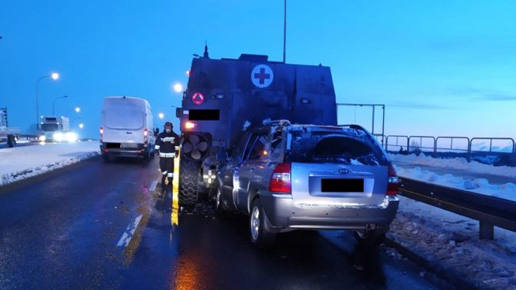 Jak wstępnie ustalili, kierujący kią, 60-letni mieszkaniec Rzeszowa, jadąc w kierunku Ronda Kuronia, nie zachował ostrożności i uderzył w tył jadącego w tym samym kierunku medycznego pojazdu wojskowego