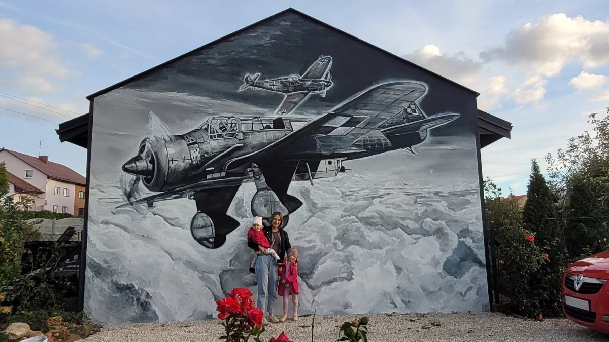 Jak dodał, inspiracją była pasja do historii militariów osoby, dla której powstał mural, a także fakt, że w pobliskiej Weryni stacjonowały właśnie takie samoloty.