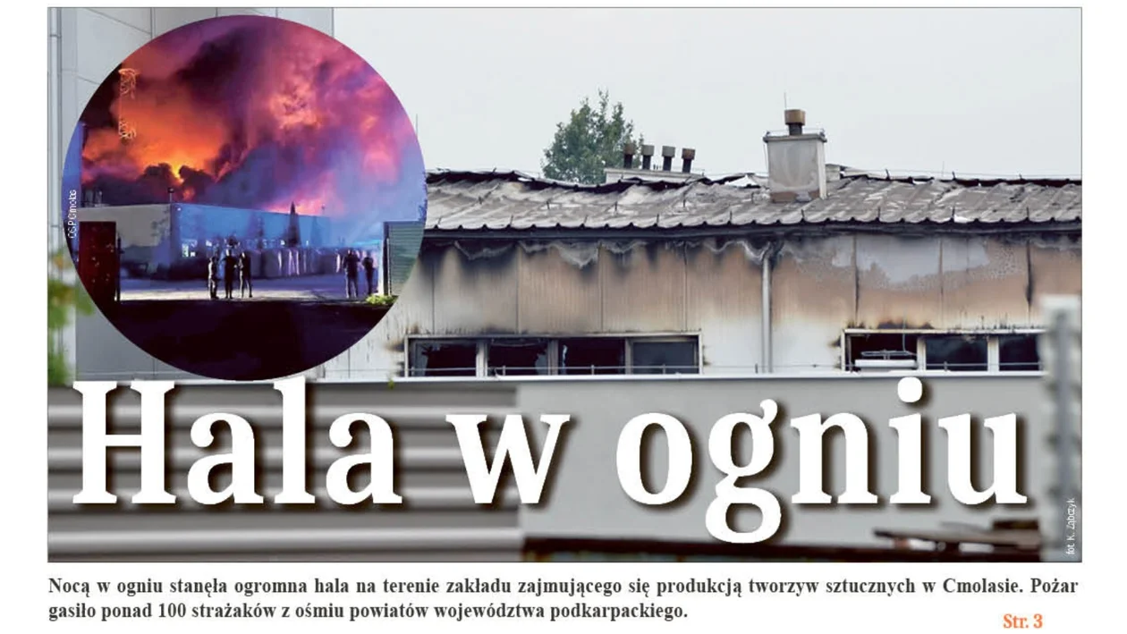 - Pożar hali na terenie zakładu produkującego tworzywa sztuczne w Cmolasie