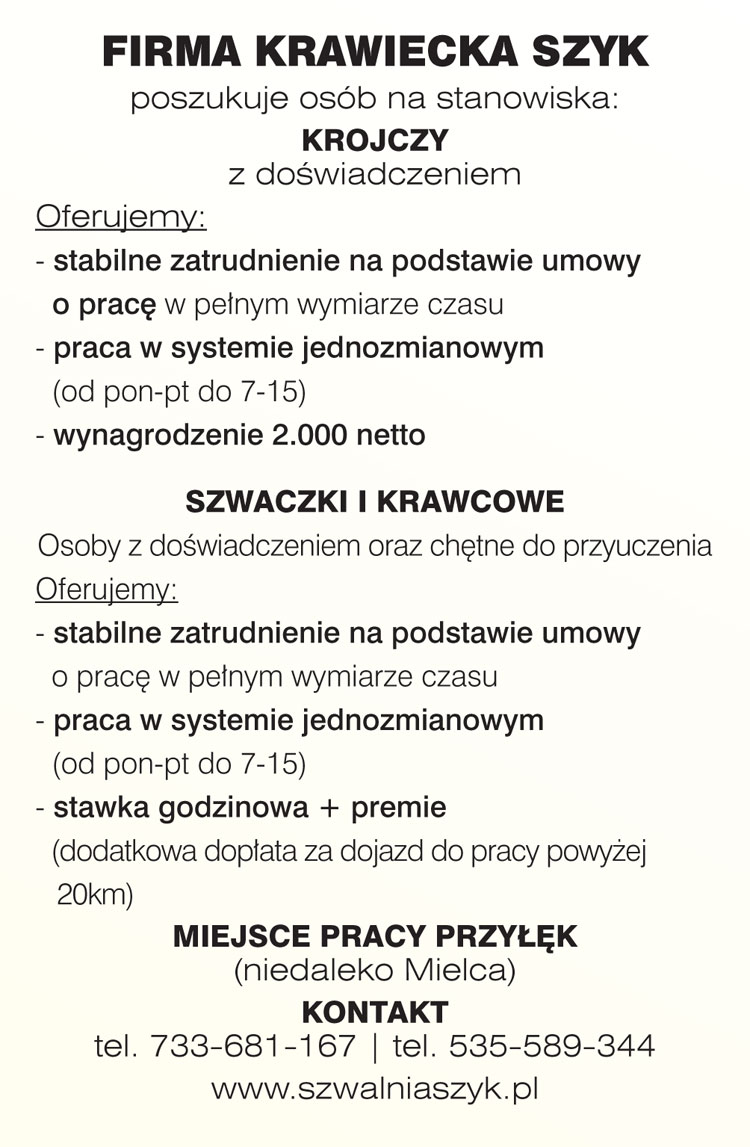 Oferta pracy: Firma Krawiecka SZYK