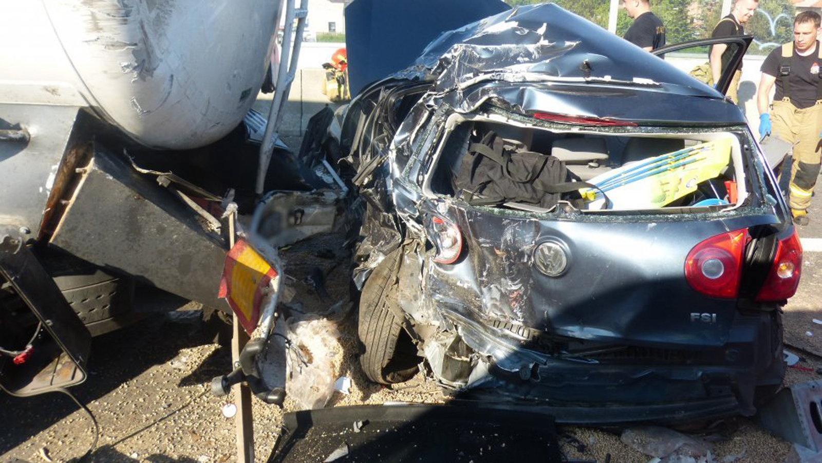 Osobówka zmiażdżona przez dwa TIRy. Nie żyje mieszkaniec Podkarpacia