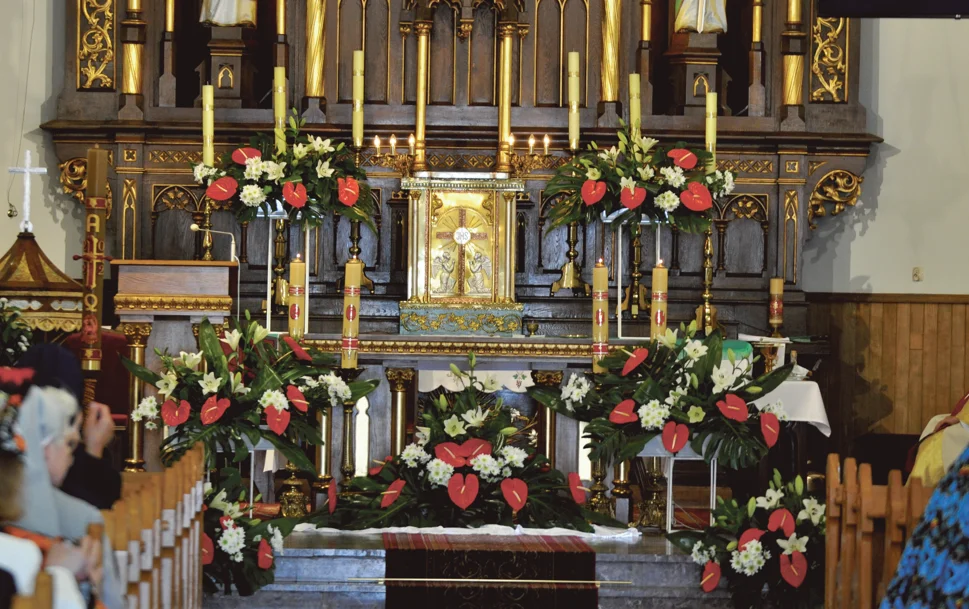 Natomiast ołtarz główny, który jest również zabytkiem, zostanie oczyszczony poprzez usunięcie wtórnych nawarstwień i zabrudzonej politury, uzupełnienie ubytków drewna, rekonstrukcja elementów rzeźbiarskich, wielostopniowa impregnacja osłabionego drewna, dezynfekcja, doczyszczenie chemiczne powierzchni złoceń, punktowe uzupełnianie złoceń, srebrzeń, polichromii, scalanie kolorystyczne powierzchni dębu, położenie nowej szelakowej politury.