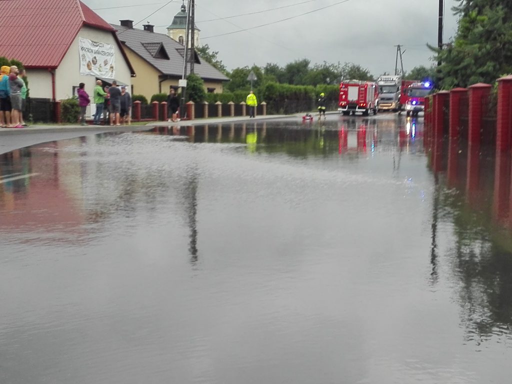 Samorządowiec, odczytując pismo mieszkańców, zaznaczył, że na czas wypompowywania wody z zalanych okolicznych posesji ruch na drodze krajowej jest wstrzymywany na kilka godzin dla samochodów ciężarowych.