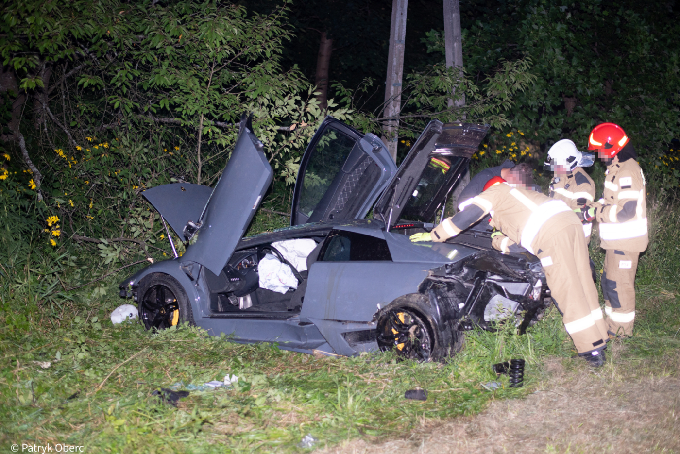 Według pierwszych ustaleń policji kierujący samochodem lamborghini murcielago stracił panowanie nad pojazdem, zjechał z drogi i dachował. Z nieoficjalnych informacji wynika, że pojazdem podróżowało dwóch mężczyzn.