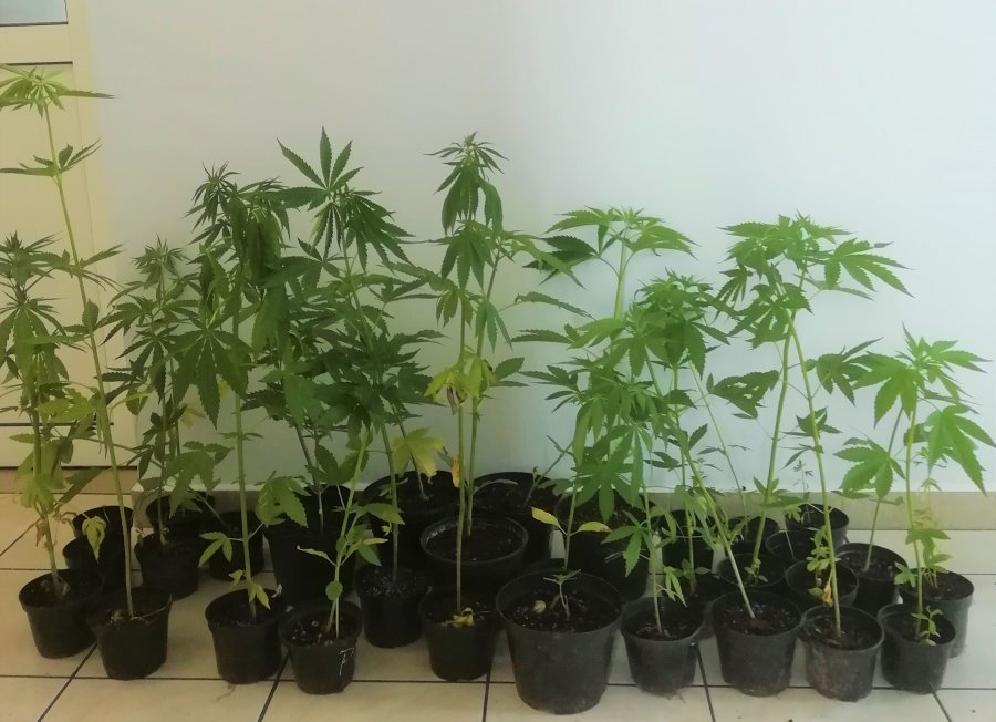Policjanci znaleźli 32 doniczki z roślinami. Z krzewów tych, po wysuszeniu, mężczyzna mógłby uzyskać kilkadziesiąt porcji narkotyku.
