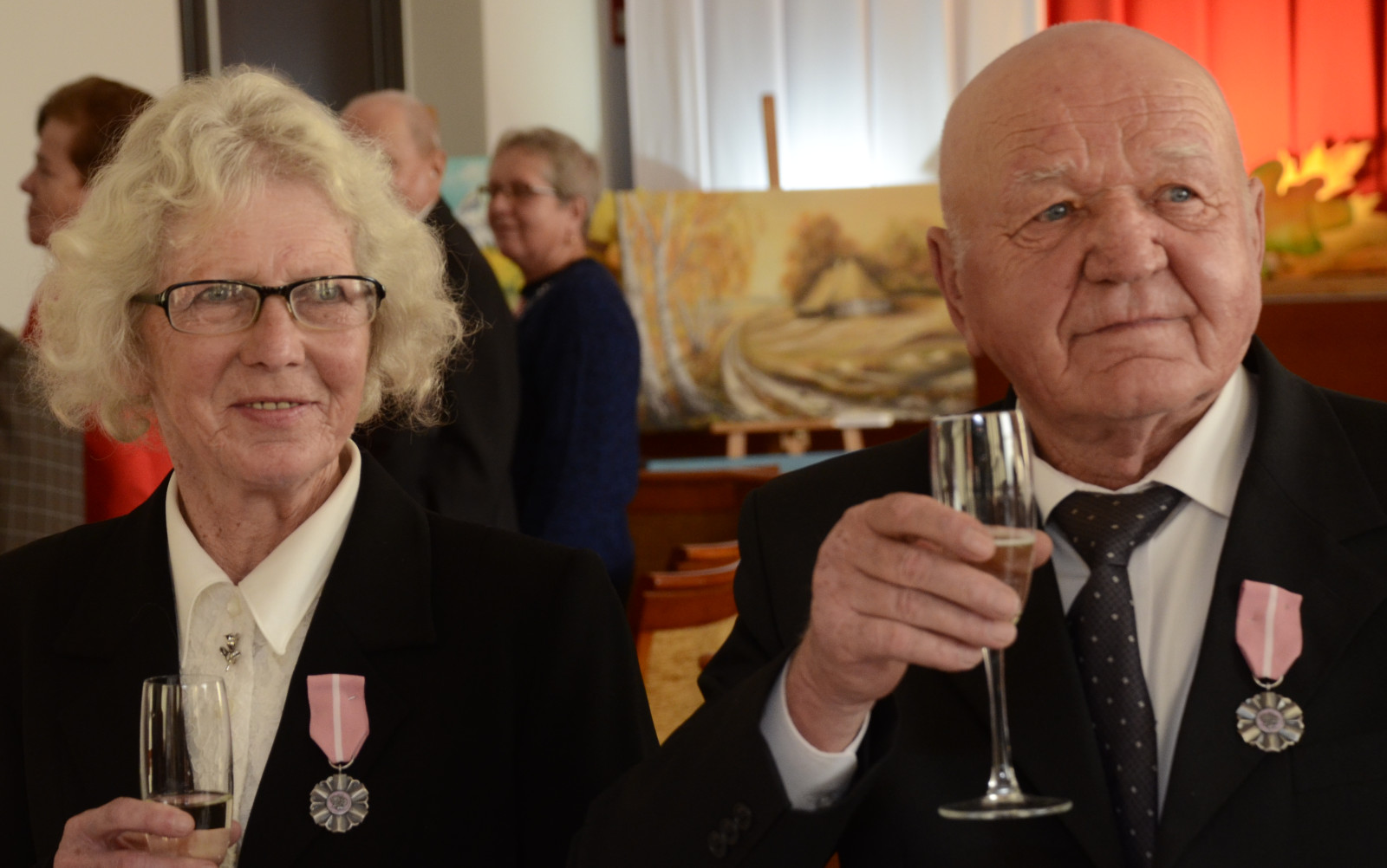 Po oficjalnej ceremonii wręczenia odznaczeń jubilaci usiedli do stołu, by wznieść toast kieliszkiem szampana. Czekał na nich również słodki poczęstunek.