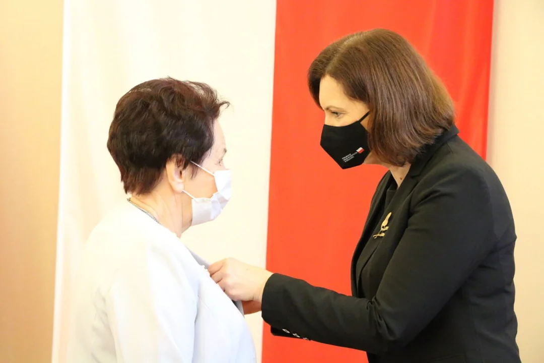 Położna Kazimiera Kogut otrzymała 29 listopada 2021 r. złoty medal za długoletnią służbę od Prezydenta RP.