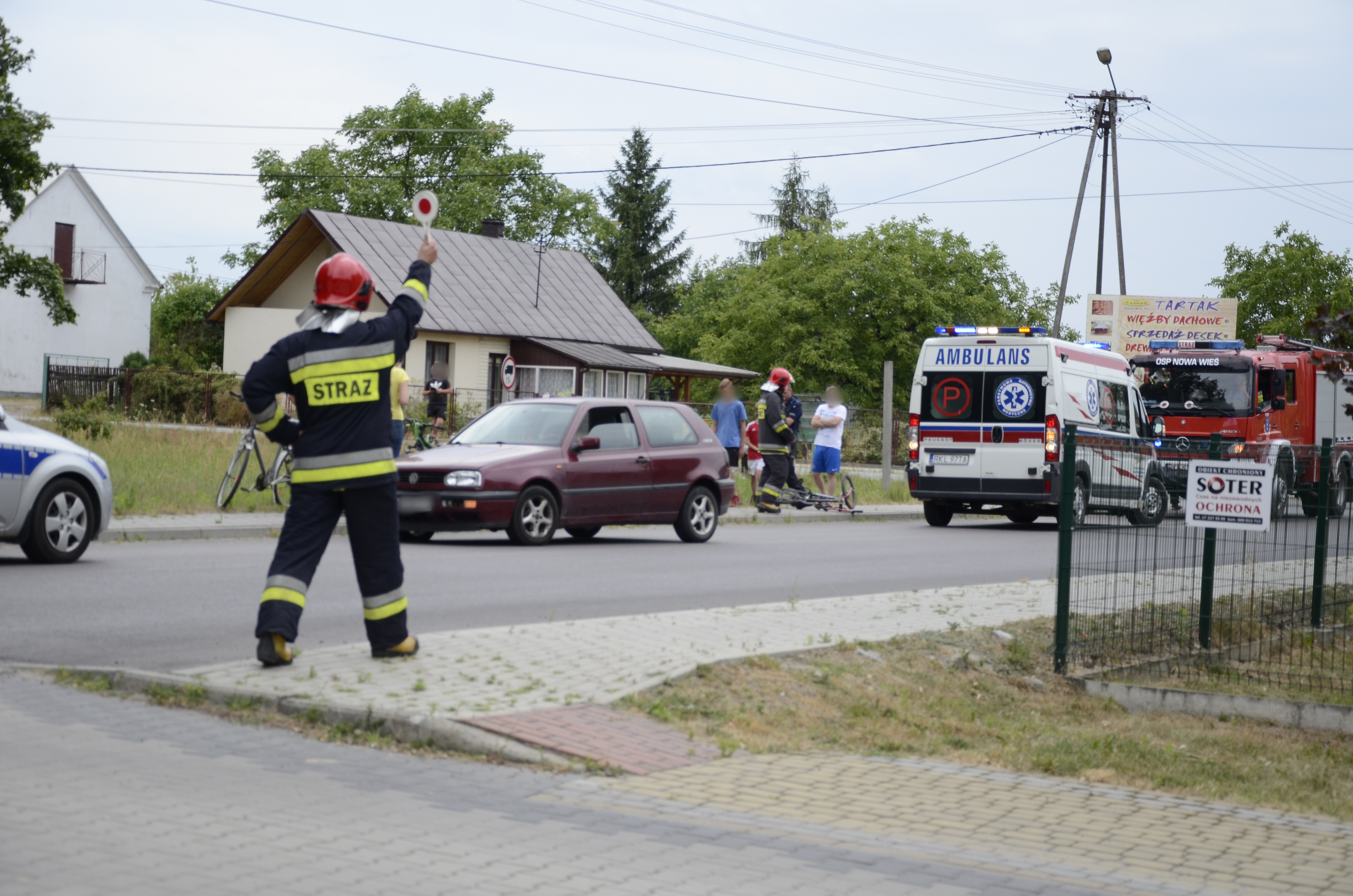 Samochód osobowy potrącił rowerzystę. Interweniowała straż pożarna, policja i pogotowie.