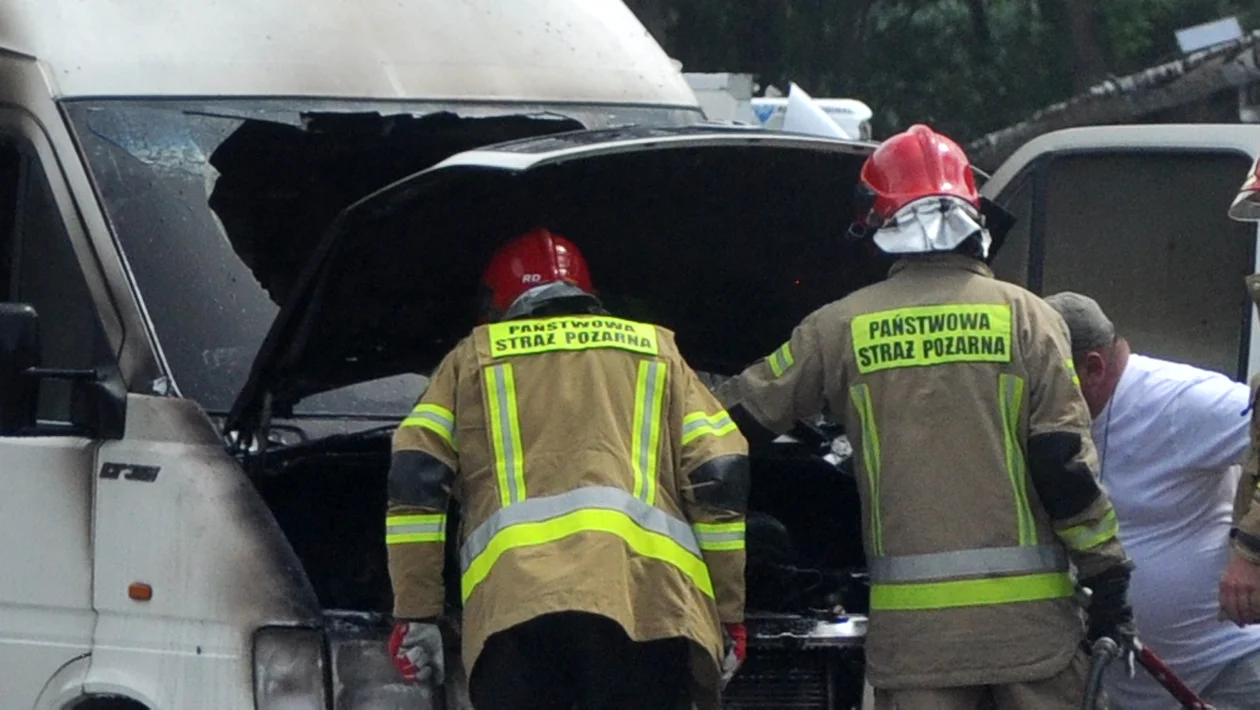 Strażacy gasili pożar dostawczego samochodu. | Fot. Anna Pocałuń