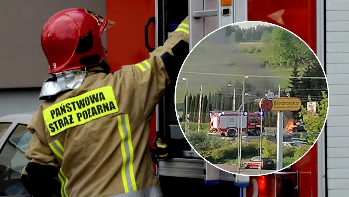 Na miejscu szybko zjawili się strażacy. Trwa dogaszanie. Fot. Czytelnik Piotr.