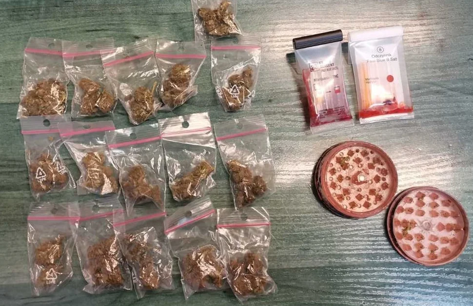 - W trakcie czynności funkcjonariusze ujawnili schowane w bieliźnie 18-letniego pasażera woreczki z suszem, a w należącej do niego podręcznej saszetce - młynek do mielenia suszu. Mężczyzna wyjaśnił policjantom, że substancję zakupił legalnie.18-latek został zatrzymany. Zabezpieczony susz sprawdzono policyjnym testerem, który wykazał obecność substancji niedozwolonych
