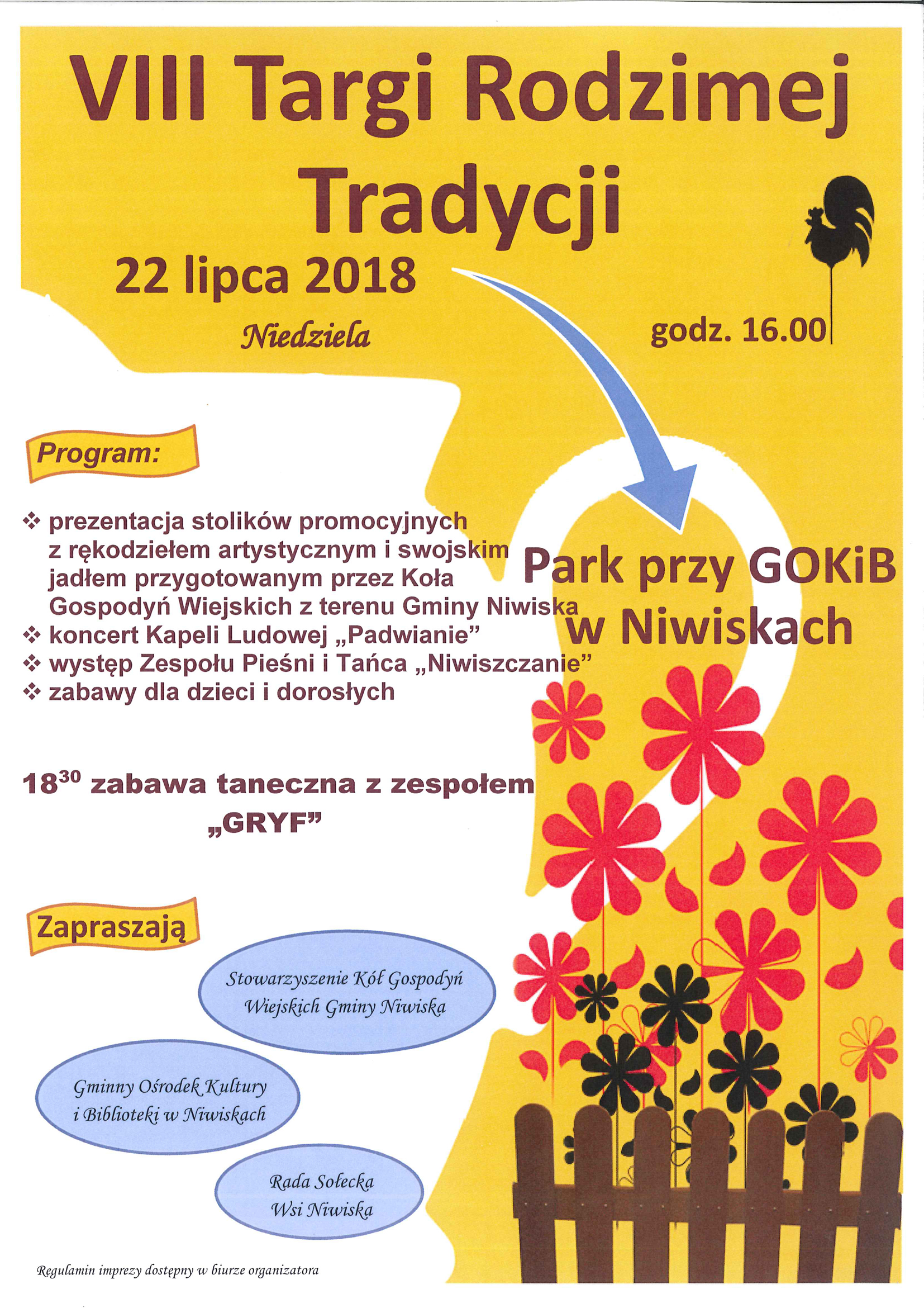 W programie prezentacja stoisk z rękodziełem artystycznym i swojskim jadłem przygotowanym przez Koła Gospodyń Wiejskich.
