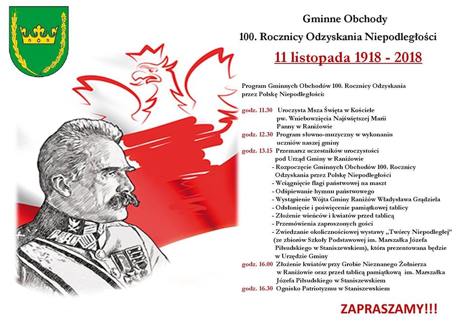 Po niej, o godz. 12.30 odbędzie się pokaz słowno-muzyczny w wykonaniu uczniów. Następnie uczestnicy uroczystości przemaszerują pod Urząd Gminy w Raniżowie.