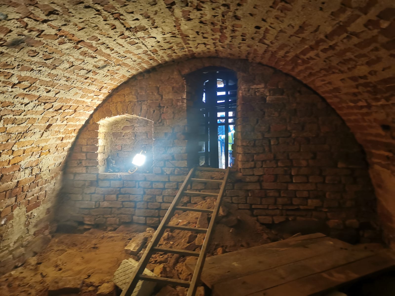 Do tego niewielkiego pomieszczenia o wymiarach 4 na 4 metry można już dostać się z zewnątrz. Prowadzi do niego korytarz, którego ściany są wyłożone starymi cegłami.