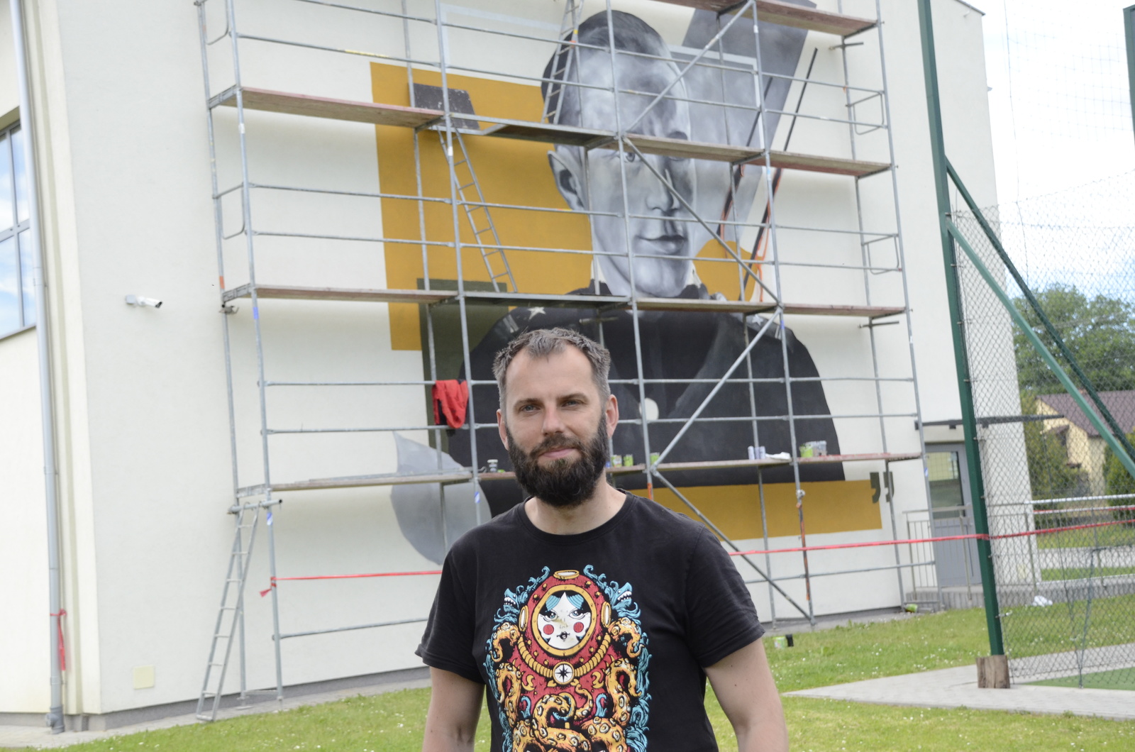 - Moja przygoda z malowaniem zaczęła się już w 2002 roku, malowałem graffiti po nocach. Nie było jeszcze wtedy murali. Zaczynałem jako artysta uliczny, malujący litery w Sanoku. Nie mówię o dewastacjach, bo miałem wtedy twórcze zamiary. To się jakoś tak powoli rozwijało, byłem wtedy w szkole średniej, w technikum geodezyjnym. W trakcie szkoły odkryłem swoje umiejętności i stwierdziłem, że może coś z tego być. Zacząłem później studia w Sanoku, wtedy jeszcze na kierunku edukacja plastyczna. Zauważyłem, że graffiti to nie tylko litery, ale też portrety. Będąc na studiach, podszkoliłem swój warsztat. Trafiały się nawet zarobkowe malowania. Uczyłem się różnych technik. Na studiach pierwszy raz zetknąłem się ze starą fotografią jako inspiracją do malowania. Właśnie malując ze starych fotografii, zrobiłem dyplom z malarstwa.