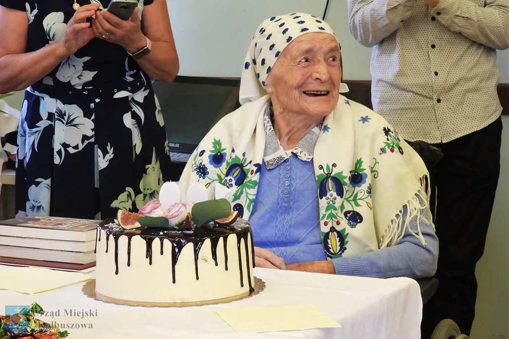Stulatkę tego dnia odwiedzili również Jan Zuba, burmistrz oraz kierownik USC Ewa Gul-Czachor. W imieniu własnym oraz mieszkańców złożyli jubilatce serdeczne gratulacje i życzenia, oraz wręczyli list gratulacyjny, bukiet kwiatów, książki i pamiętnik.