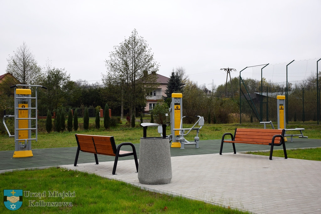 W ramach inwestycji powstało sześć stanowisk do ćwiczeń na urządzeniach sportowo-rekreacyjnych (ławeczka-prostownik, prasa nożna-wioślarz, drabinka-podciąg nóg). Wokół urządzeń wykonana została nawierzchnia amortyzującą z płyt SBR, a jako dojście do siłowni zaprojektowano utwardzenie terenu z kostki betonowej. Na placu pojawiły się również dwie ławki, stojak na rowery i kosz na śmieci.