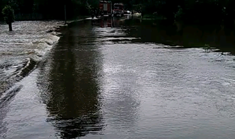 Rzeka Przyrwa przepływa bezpośrednio pod krajową drogą nr 9 w Zarębkach. Przez opady deszczu oraz topniejące śniegi jej stan znacznie się podniósł i niebezpiecznie zbliżył się do wysokości drogi