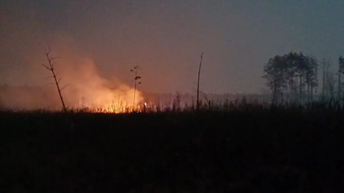 - Pożar objął trudno dostępne tereny, porośnięte głównie trzcinami i trawami. W pierwszej kolejności działania ratownicze polegały na ograniczeniu rozprzestrzeniania się ognia na tereny leśne