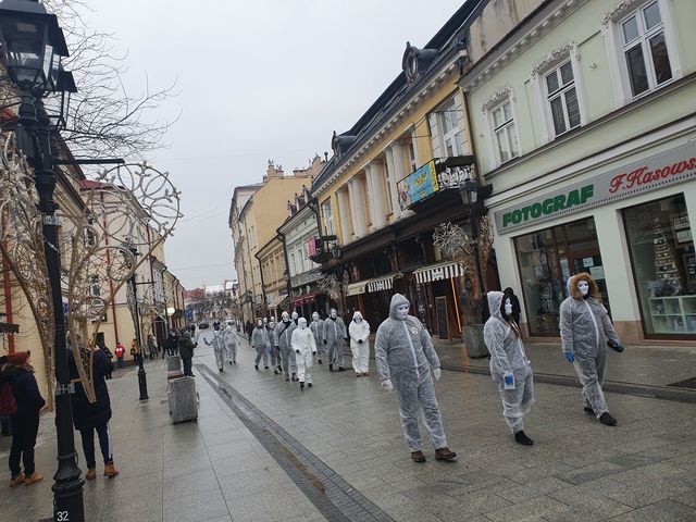 - Uczestnicy chcieli pokazać w ten radykalny sposób, że tak będzie wyglądał świat jeżeli ludzie pozwolą na odbieranie sobie wolności, pozwolą na segregację sanitarną, na zamykanie z dnia na dzień swoich biznesów (...)