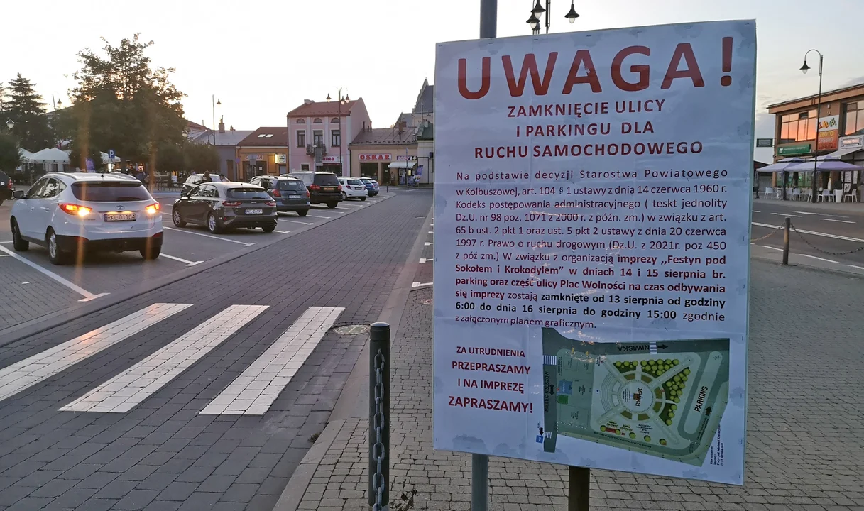 W związku z organizacją festynu parking na rynku oraz część ulicy Plac Wolności na czas odbywania się imprezy zostają zamknięte od 13 sierpnia do dnia 16 sierpnia (wtorek) do godziny 15.
