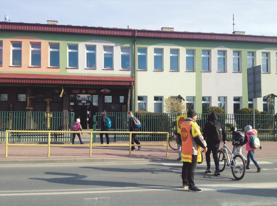 - Jednym z rozwiązań nad jakim proponuję się zastanowić jest przesunięcie lub likwidacja ogrodzenia szkoły i zlokalizowanie chodnika bliżej ściany budynku, a w tym miejscu budowa zatoczki przystankowej umożliwiającej bezpieczne wysadzenie dzieci przez odwożących je rodziców
