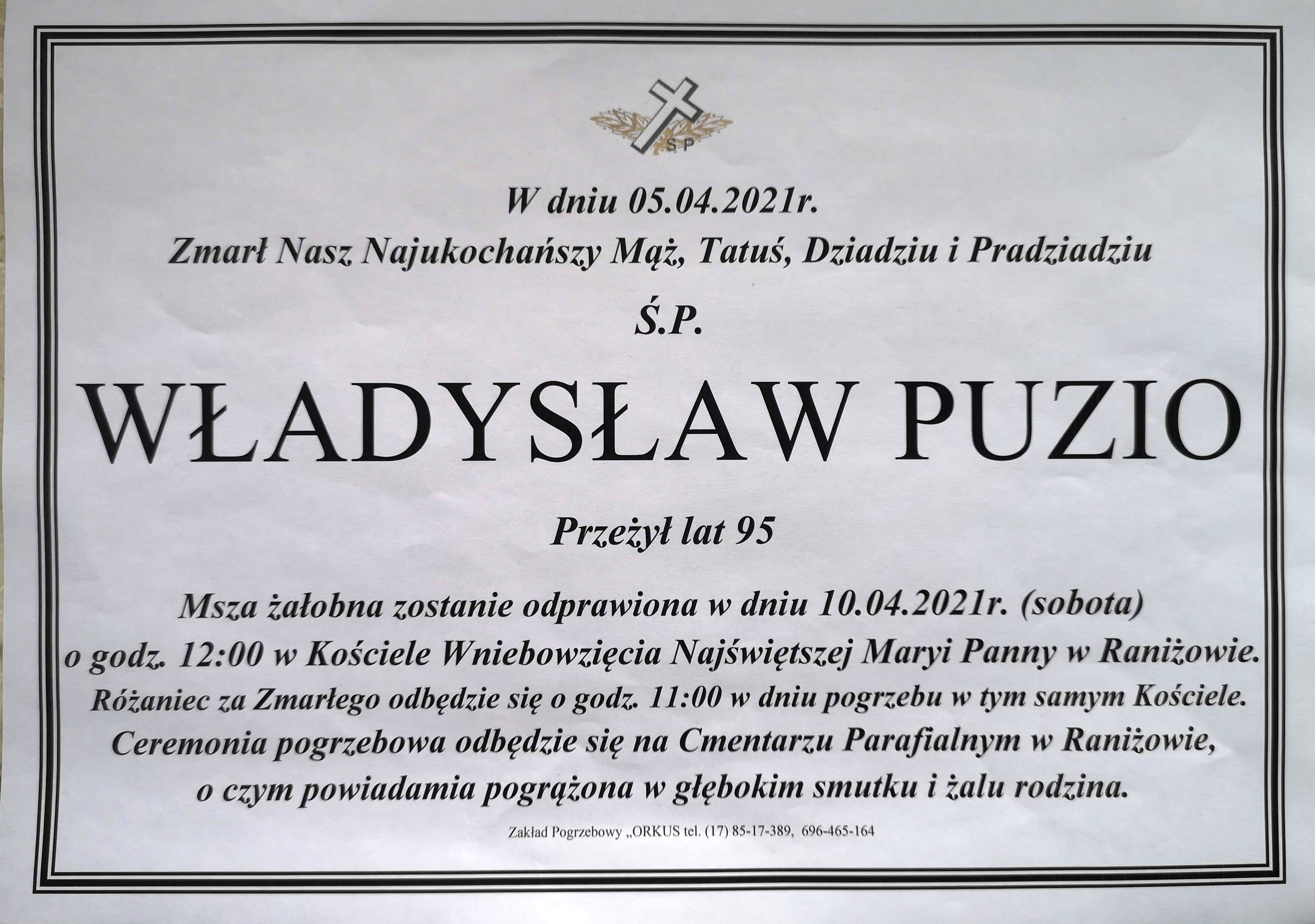W sobotę pogrzeb Władysława Puzio [FOTO]Władysław Puzio zmarł 5 kwietnia. | Fot. Archiwum rodzinne1 / 21 / 2Władysław Puzio zmarł 5 kwietnia. | Fot. Archiwum rodzinne2 / 22 / 2