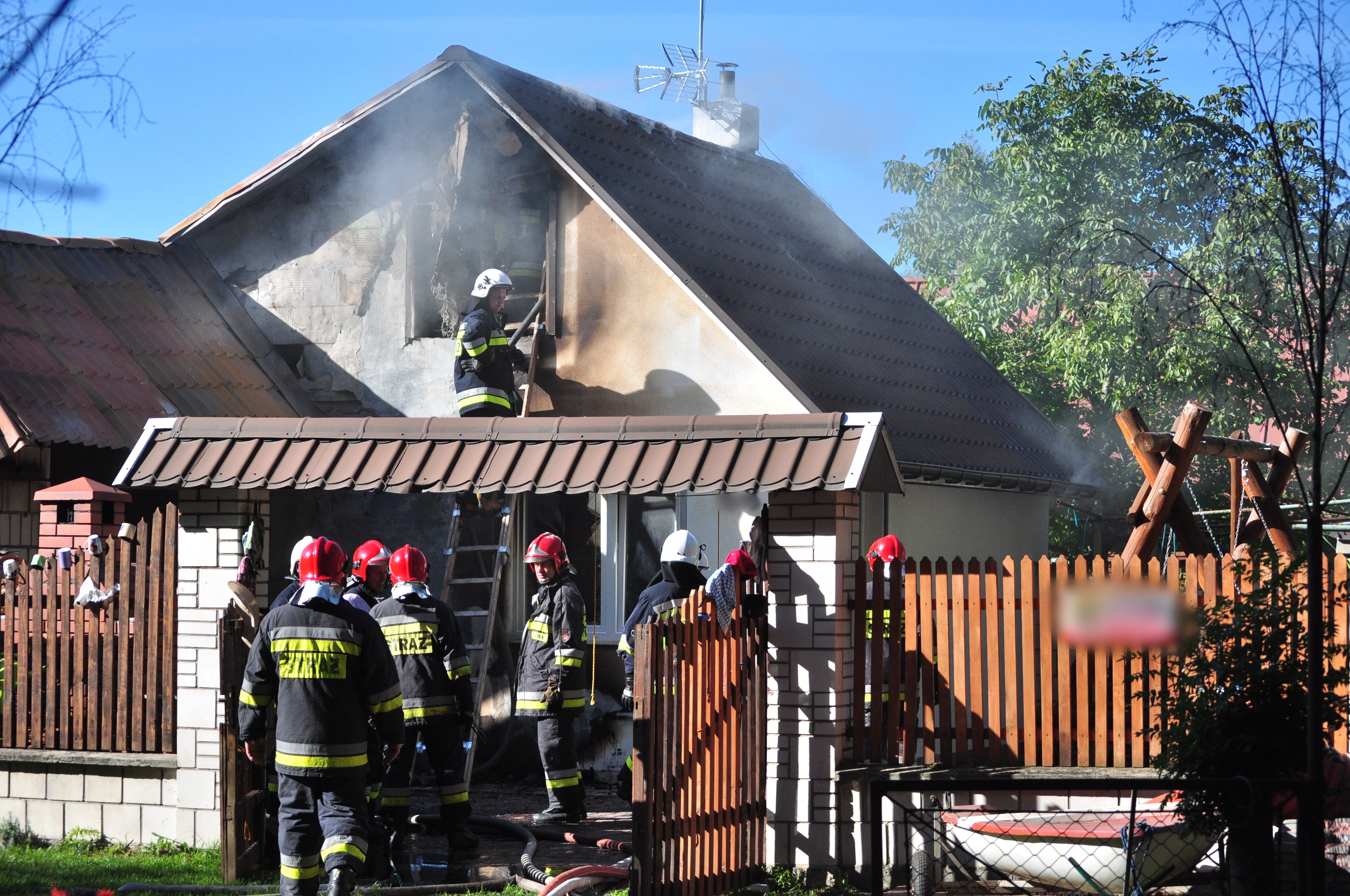 Na pomoc ruszyły cztery zastępy JRG Kolbuszowa i cztery zastępy OSP. Strażacy odłączyli energię elektryczną i umożliwili dostęp do budynku. Natychmiast podali trzy prądy wody w natarciu do palących się pomieszczeń i jeden w obronie - na sąsiedni budynek i las.