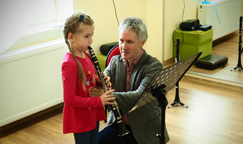 Uczniowie pracowali nad prawidłowym kształtowaniem nawyków warsztatowych młodego klarnecisty. Z inicjatywy Piotra Lato warsztaty te odbywać się będą cyklicznie w placówce w Niwiskach.