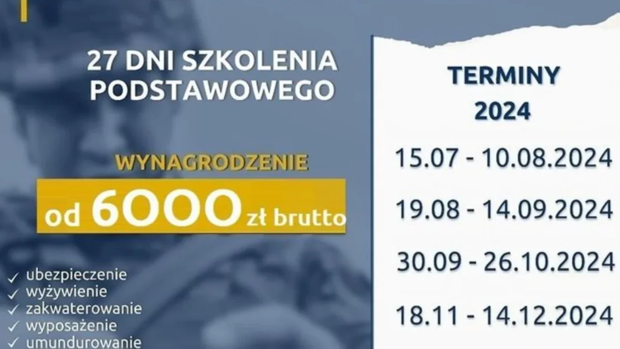 - comiesięcznym uposażenie już od 1. dnia służby w wysokości 6000 zł brutto (dla osób do 26. roku życia brutto=netto)