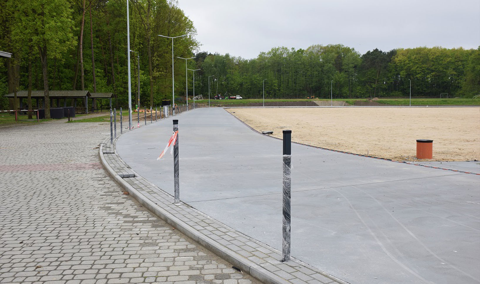 Wykonawcy zadbają o montaż masztów i lamp oświetleniowych oraz linii kablowych zasilających. W planach jest, aby wokół boiska powstało ogrodzenie zewnętrzne wraz z bramami i furtkami. Ponadto za bramkami piłkarskimi zamontowane zostaną nowe piłkochwyty. Wiaty stadionowe dla zawodników mieszczące się na boisku zostaną przeniesione, a plac w ich obrębie zostanie utwardzony kostką brukową. Oświetlenie oraz ogrodzenie powstaną do końca września. Za ich budowę gmina zapłaci ponad 300 tys. zł.