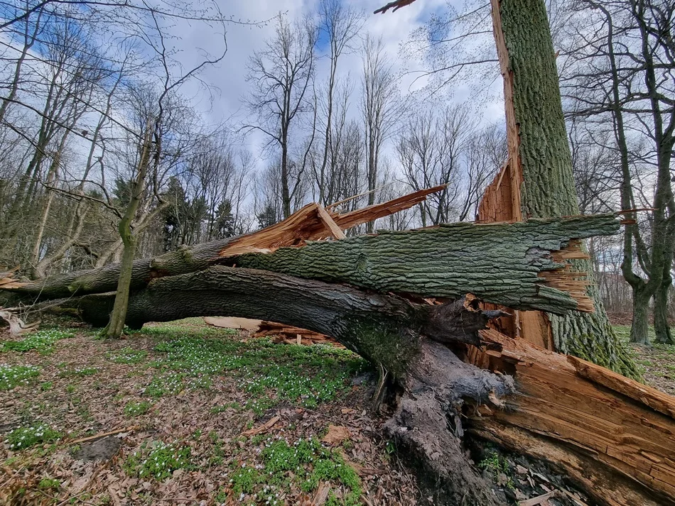 Największe drzewo powalone podczas silnych wichur na początku roku to dąb szypułkowy. Mierzył on niespełna cztery metry w obwodzie (385 cm). Obwód każdego drzewa mierzony jest na wysokości 130 centymetrów od gruntu.