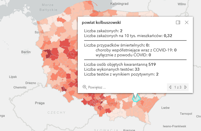Zakażenia na terenie Podkarpacia według powiatów: