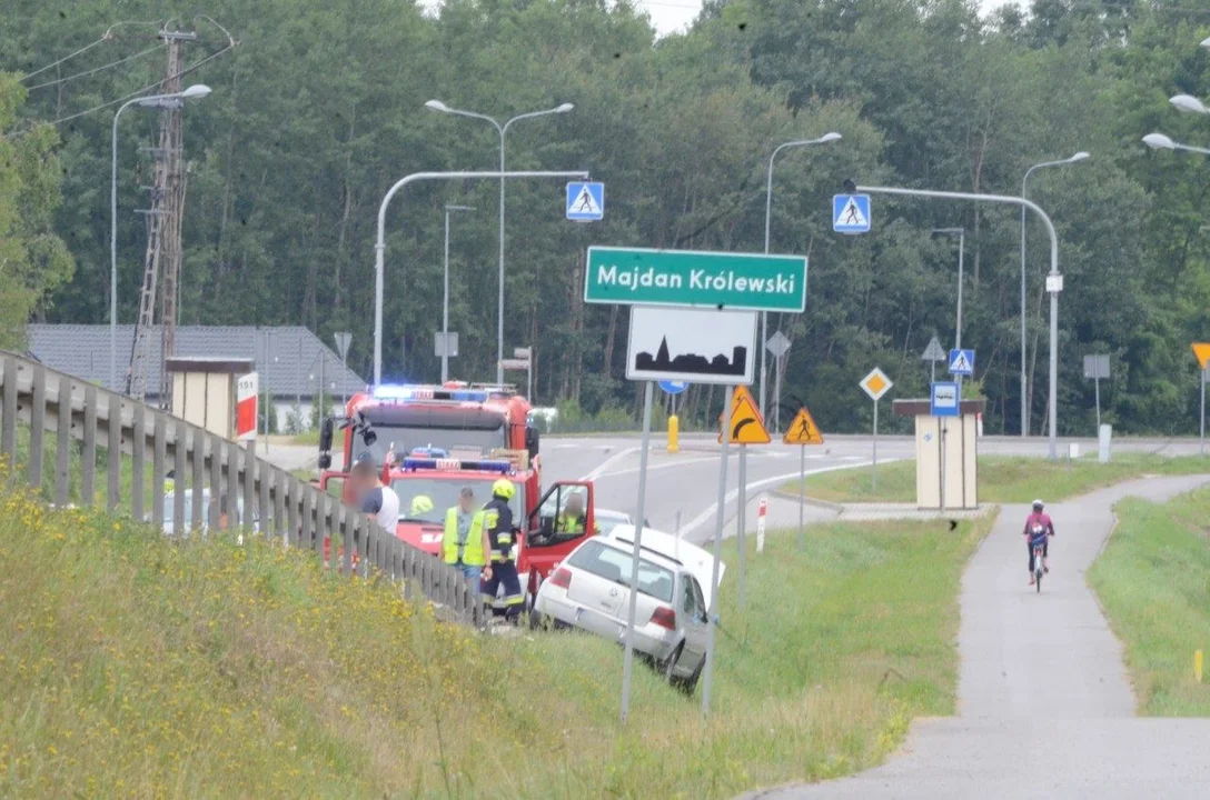 Na miejscu pracują strażacy i policjanci, którzy dokonują oględzin zdarzenia na drodze krajowej nr 9 w Majdanie Królewskim.