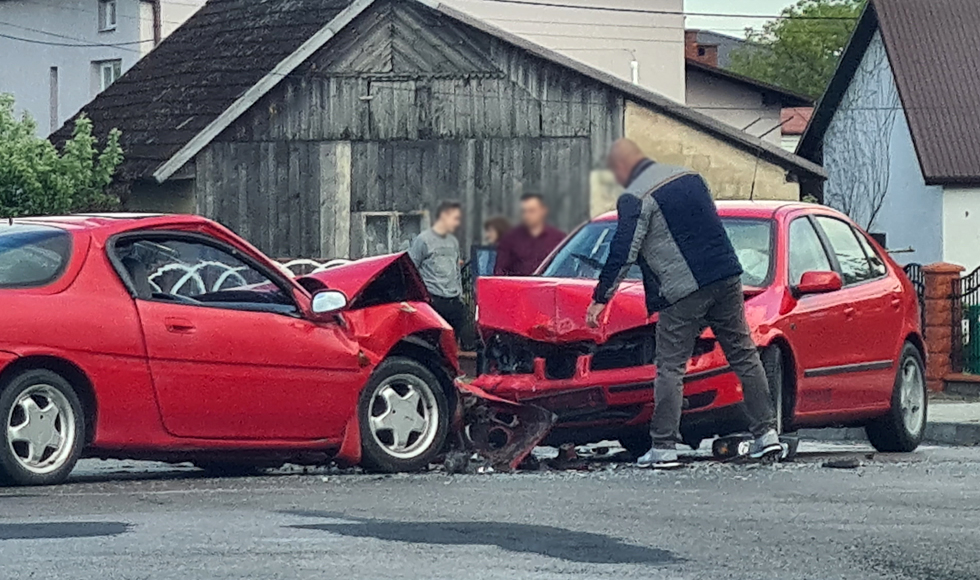 Ze wstępnych informacji wynika, że doszło tam do zderzenia czołowego dwóch pojazdów - mazdy i seata. Jedna osoba została prawdopodobnie poszkodowana.