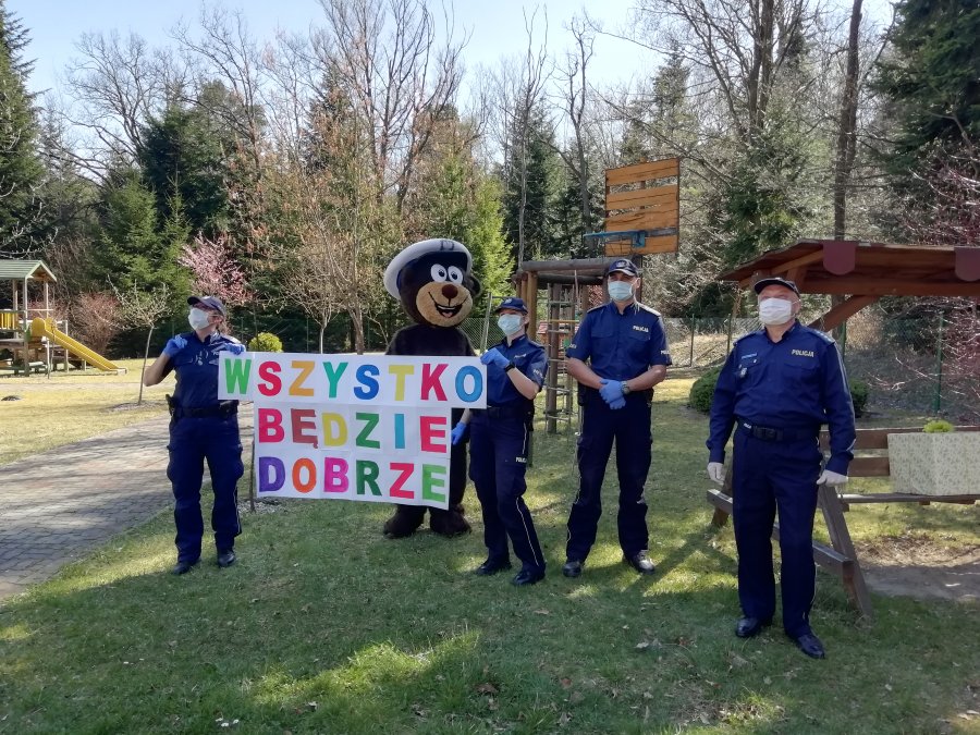 - To już kolejne odwiedziny funkcjonariuszy u dzieci, jednak ze względu na stan epidemii wizyta ta wyglądała inaczej niż dotychczas. Podczas spotkania policyjny miś rozweselał najmłodszych dodając im otuchy. Policjantki trzymając duży plakat, przypominały, że „Wszystko będzie dobrze”.
