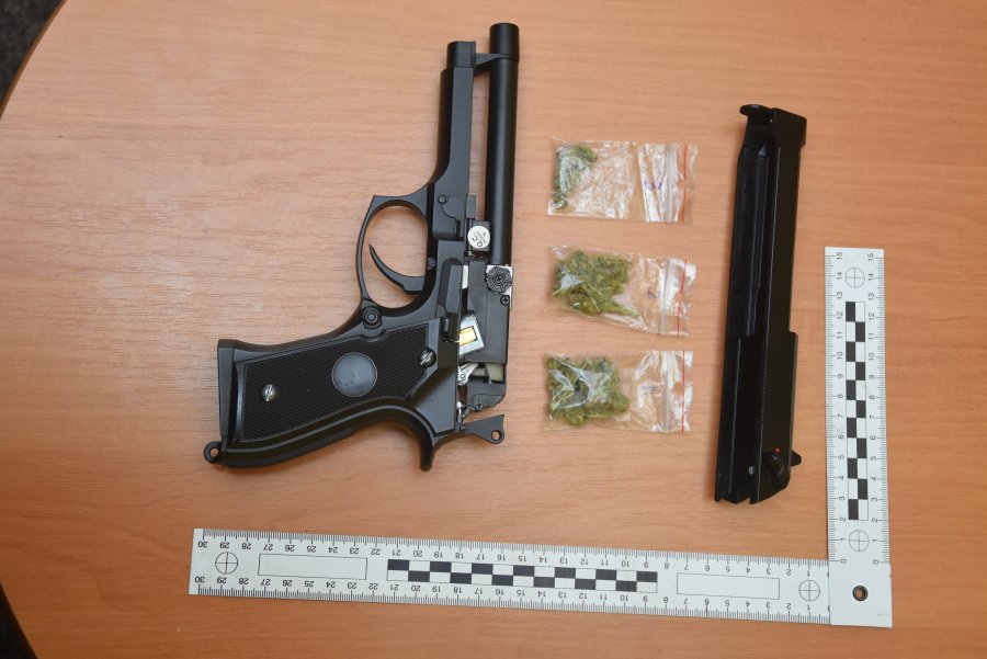 Dyrektor jednej ze szkół poinformował policjantów, że uczeń przyniósł do szkoły dziwny przedmiot, wyglądający jak pistolet. Funkcjonariusze natychmiast udali się do szkoły, aby sprawdzić tą informację. Jak się okazało 14-latek przyniósł ze sobą pistolet na plastikowe kulki, który kupił przez internet. Gdy policjanci go rozłożyli, w środku znaleźli trzy woreczki strunowe z roślinnym suszem.