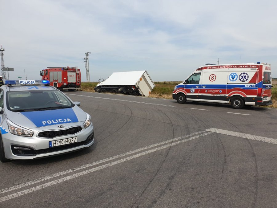 Do zdarzenia doszło wczoraj (9 września) około godz. 14 w Cieszanowie. Ze wstępnych ustaleń policjantów wynika, że kierowca mana wyjeżdżając z ul. Kościuszki na drogę wojewódzką, stracił panowanie nad pojazdem, po czym uderzył w znak drogowy, wjechał do rowu i wywrócił samochód.