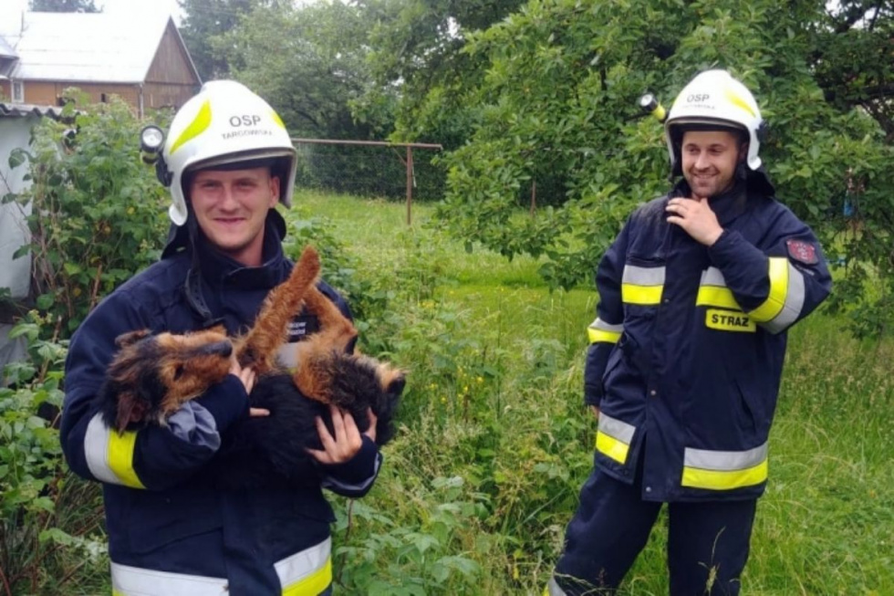 Z PODKARPACIA. Psiak był wycieńczony, pomogli mu strażacy