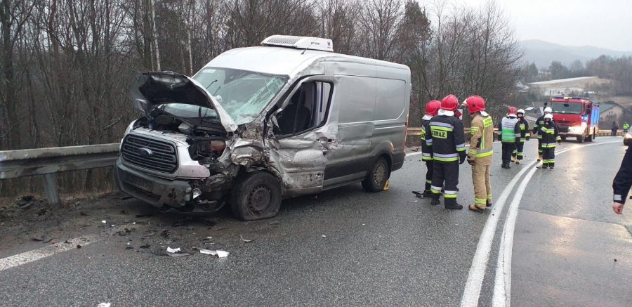 Wskutek zderzenia naczepy z fordem, ranne zostały osoby podróżujące samochodem dostawczym. 60-letni obywatel Słowacji i jego pasażerka trafili do szpitala. - Na szczęście ich obrażenia okazały się niegroźne. Kierujący pojazdami byli trzeźwi - przekazał rzecznik prasowy brzozowskiej policji.