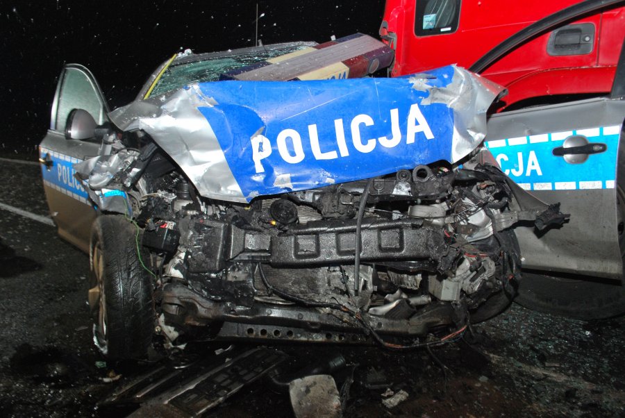 - W tym momencie rozpędzony volkswagen uderzył w policyjny pojazd. Siła uderzenia była tak duża, że radiowóz przemieścił się i uderzył w stojący na prawym pasie samochód ciężarowy, którego kierowca zatrzymał się w bezpiecznej odległości, by nie przeszkadzać w policyjnej akcji - poinformował rzecznik prasowy.