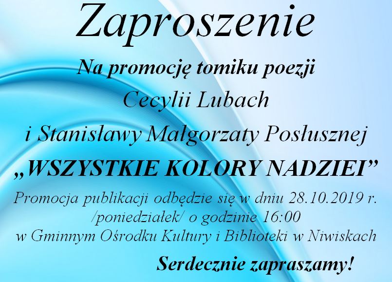 Zaproszenie na promocję tomiku poezji Cecylii Lubach i Stanisławy Małgorzaty Posłusznej