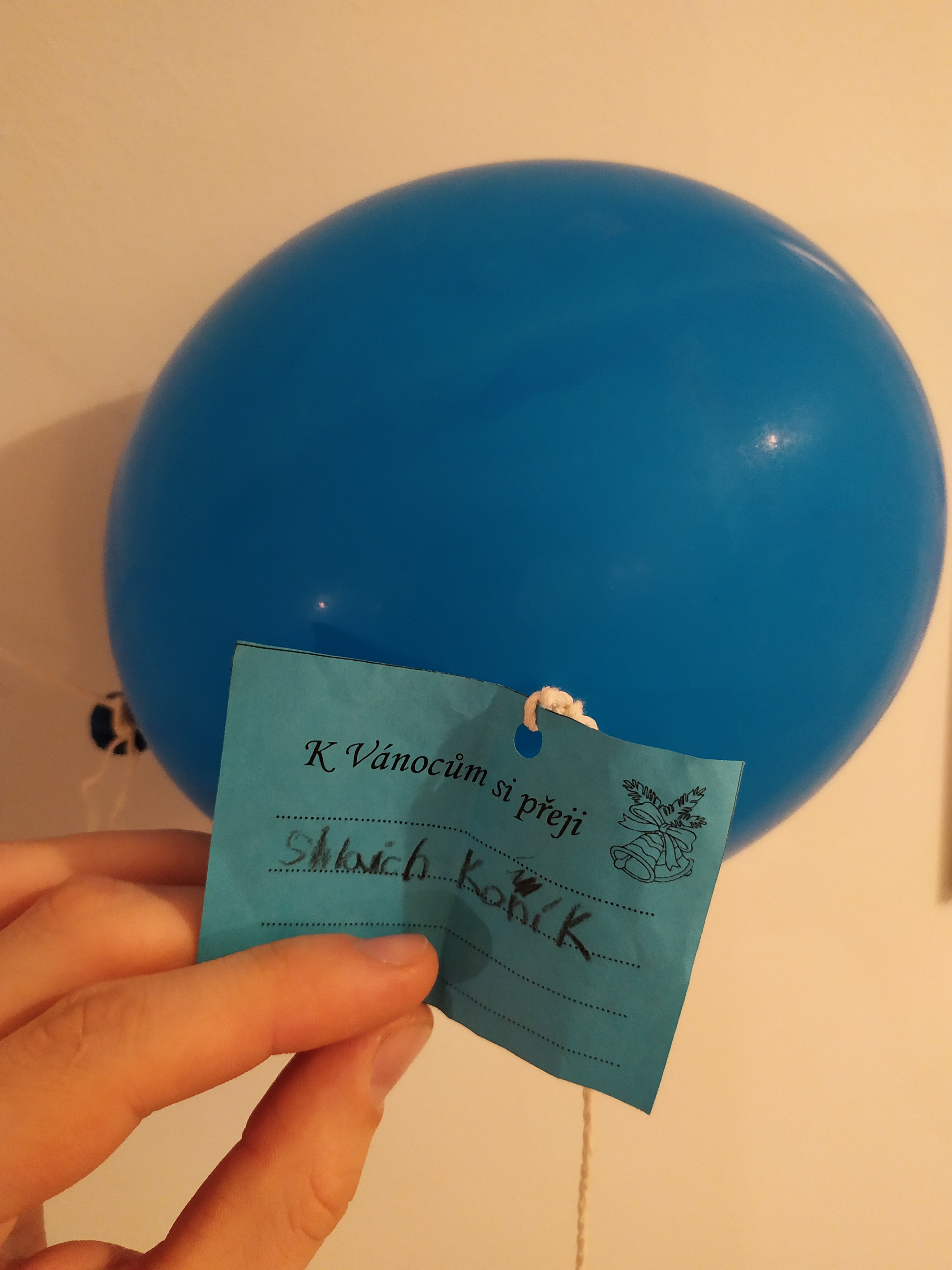 W piątek, 6 grudnia ( w Mikołajki) znalazła ona niebieski balonik przyczepiony do drzewa. Przywiązana była do niego mała karteczka napisana ... po czesku. Charakter pisma na liściku wskazuje, że było to dziecko.